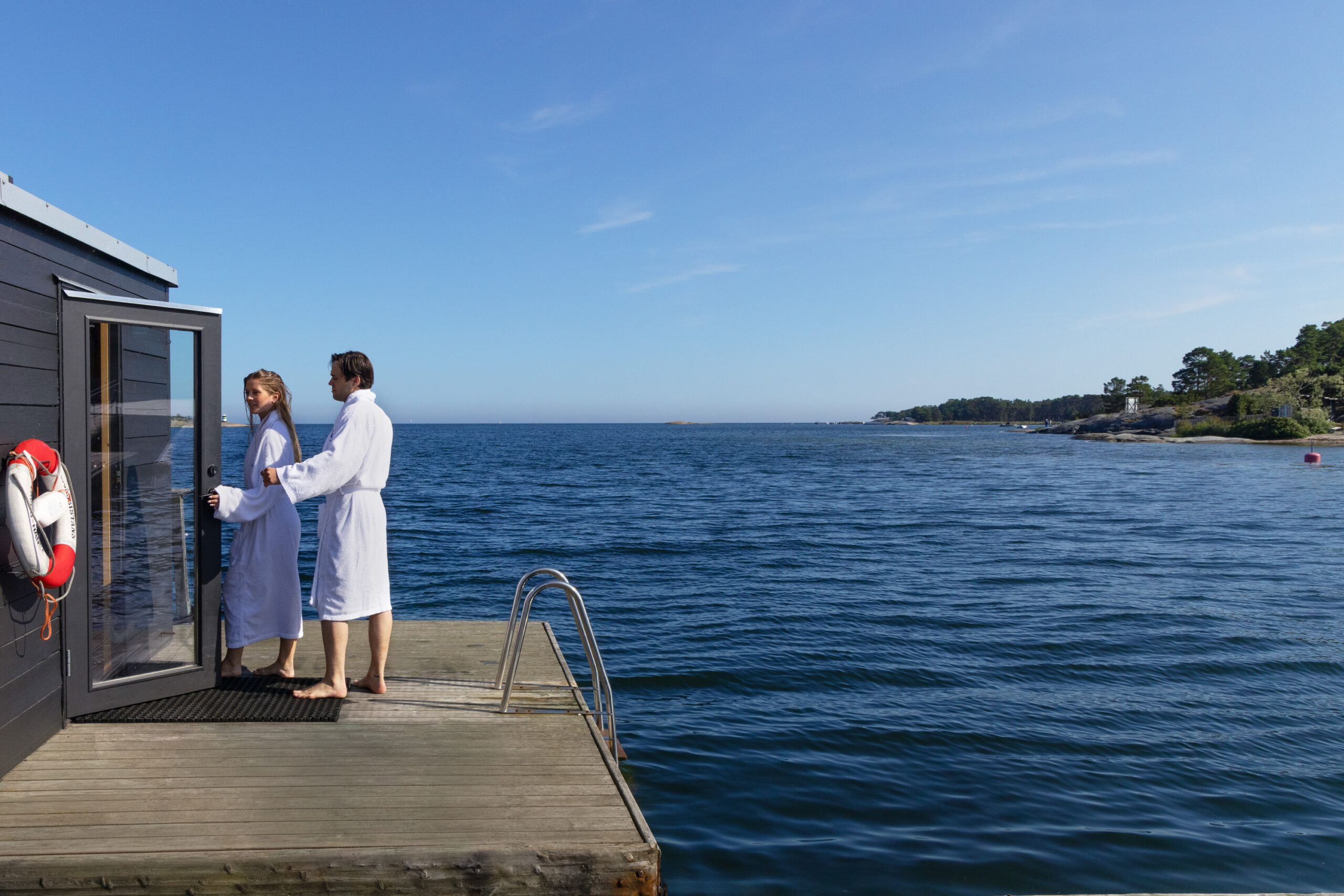 Bokningar av bastuflotten sker via receptionen. reception@sandhamn.com
