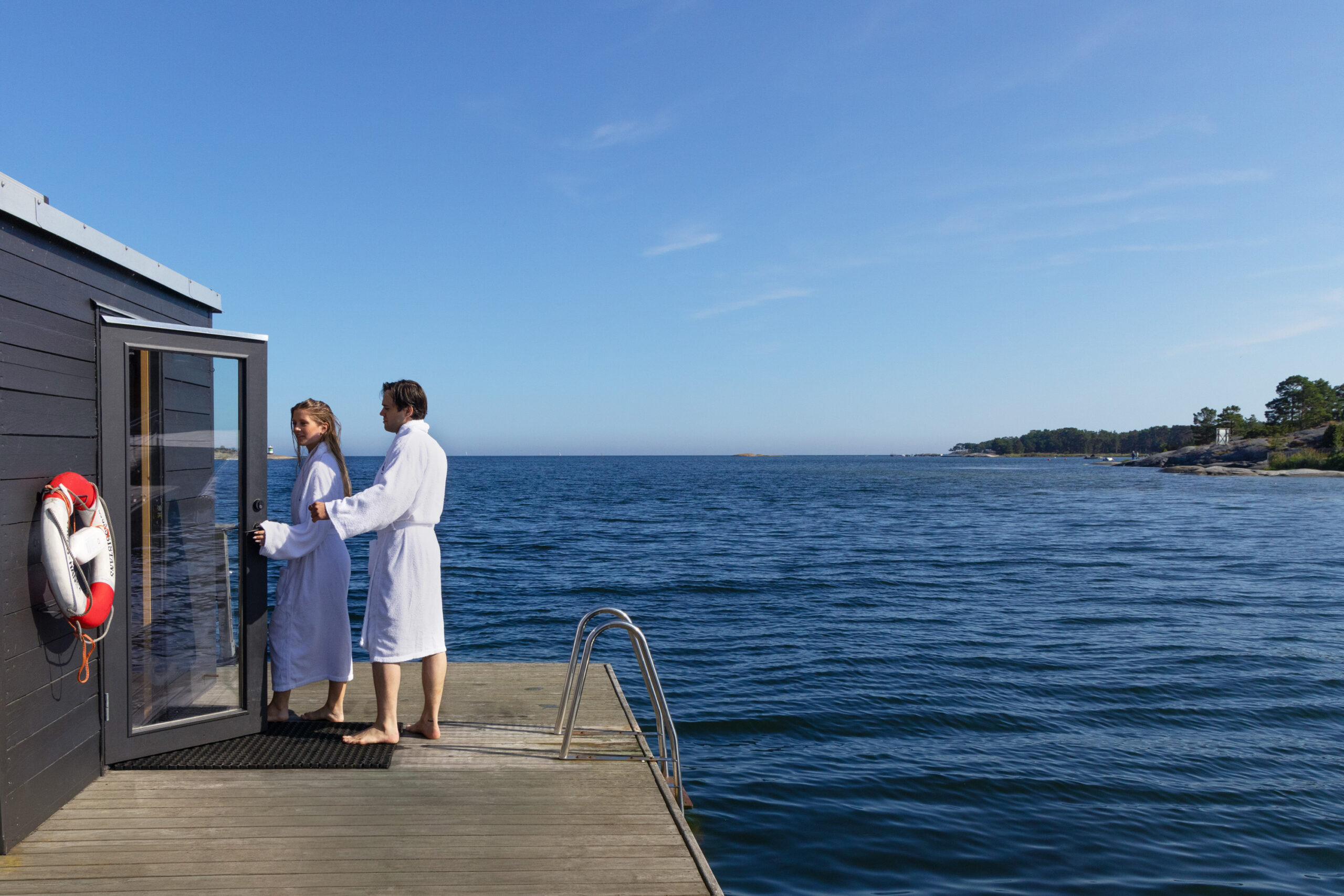 A bottle of sparkling wine awaits in your room, and throughout your stay you’ll enjoy free access to our spa. Sunday begins with a generous archipelago breakfast — and you can linger a little longer with late check-out. The sauna is heated between 10:00–12:00, a unique archipelago ritual that warms you long after.