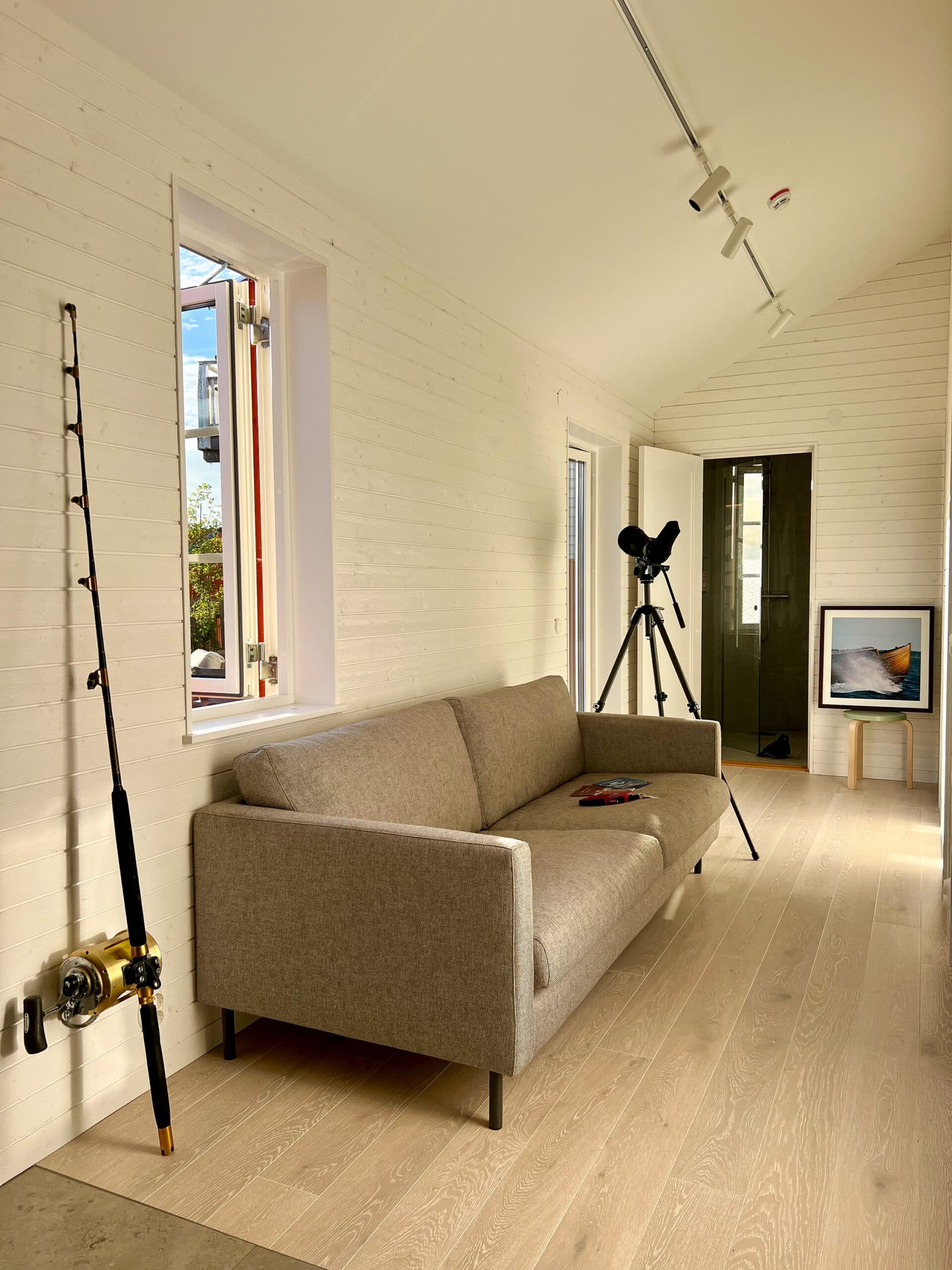 Interiören är ljus, harmonisk och funktionell, med kvalitativa material och utsikt mot hav, hamn eller tallar – alltid med naturen som sällskap.