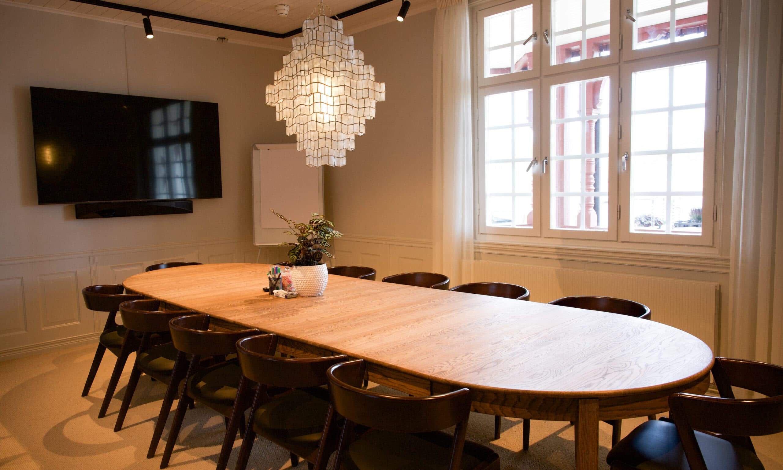 I alla våra konferensrum ingår block, pennor, blädderblock, LCD-projektor eller bildskärm samt trådlöst internet. Vi ser också till att det alltid finns vatten och frukt på plats. För mindre grupper erbjuder vi dessutom teknik för hybridmöten – helt utan extra kostnad. Lokalsittningarna anges som maximalt antal deltagare.