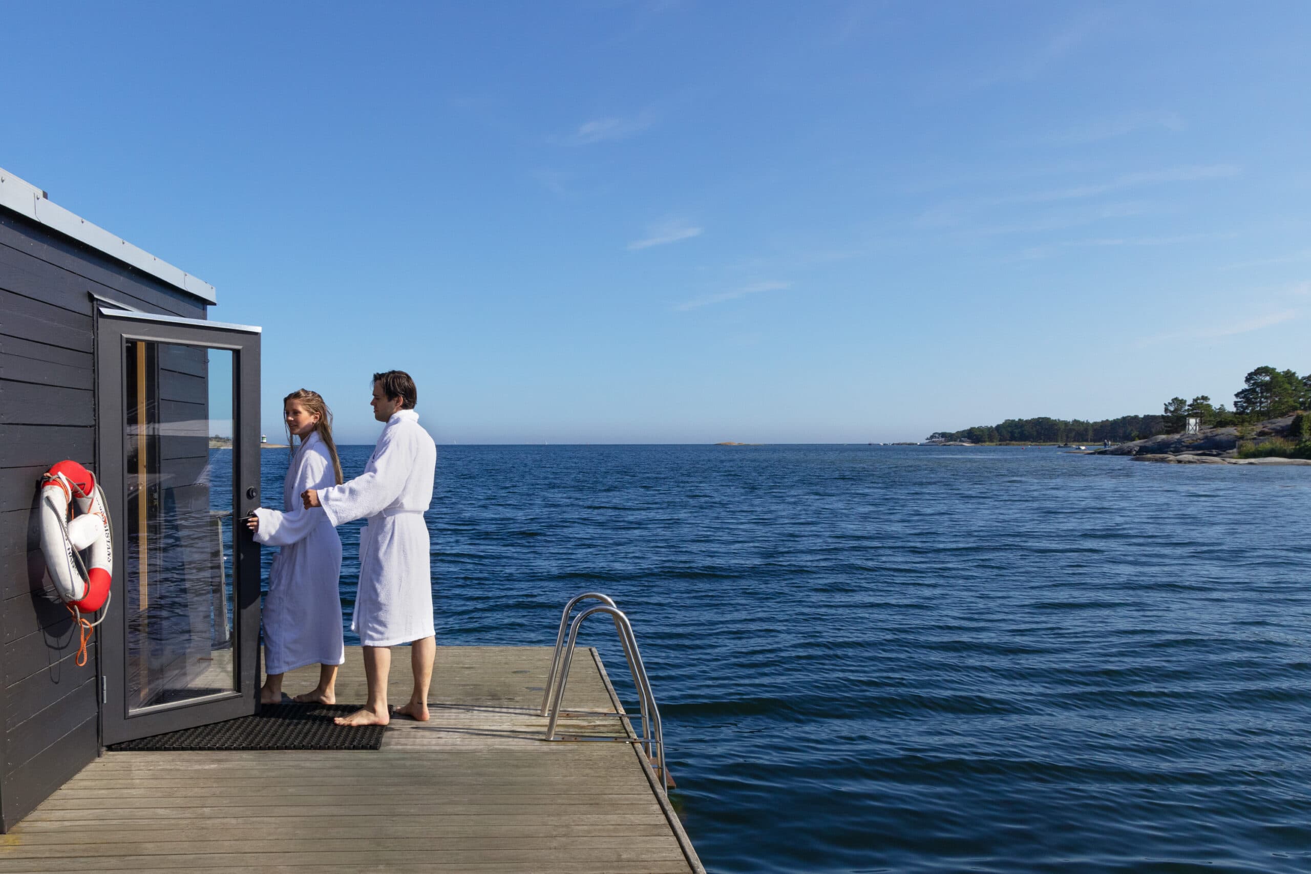 Här finns inga måsten, bara naturens egen rytm. Man promenerar längs stranden, andas in den krispiga luften och känner hur stressen försvinner. Bastun blir extra varm, brasan sprakar lite högre och samtalen dröjer sig kvar lite längre. För den som vill uppleva något extra väntar våra vedeldade bastuflottar – en stund under stjärnorna med havet alldeles intill.