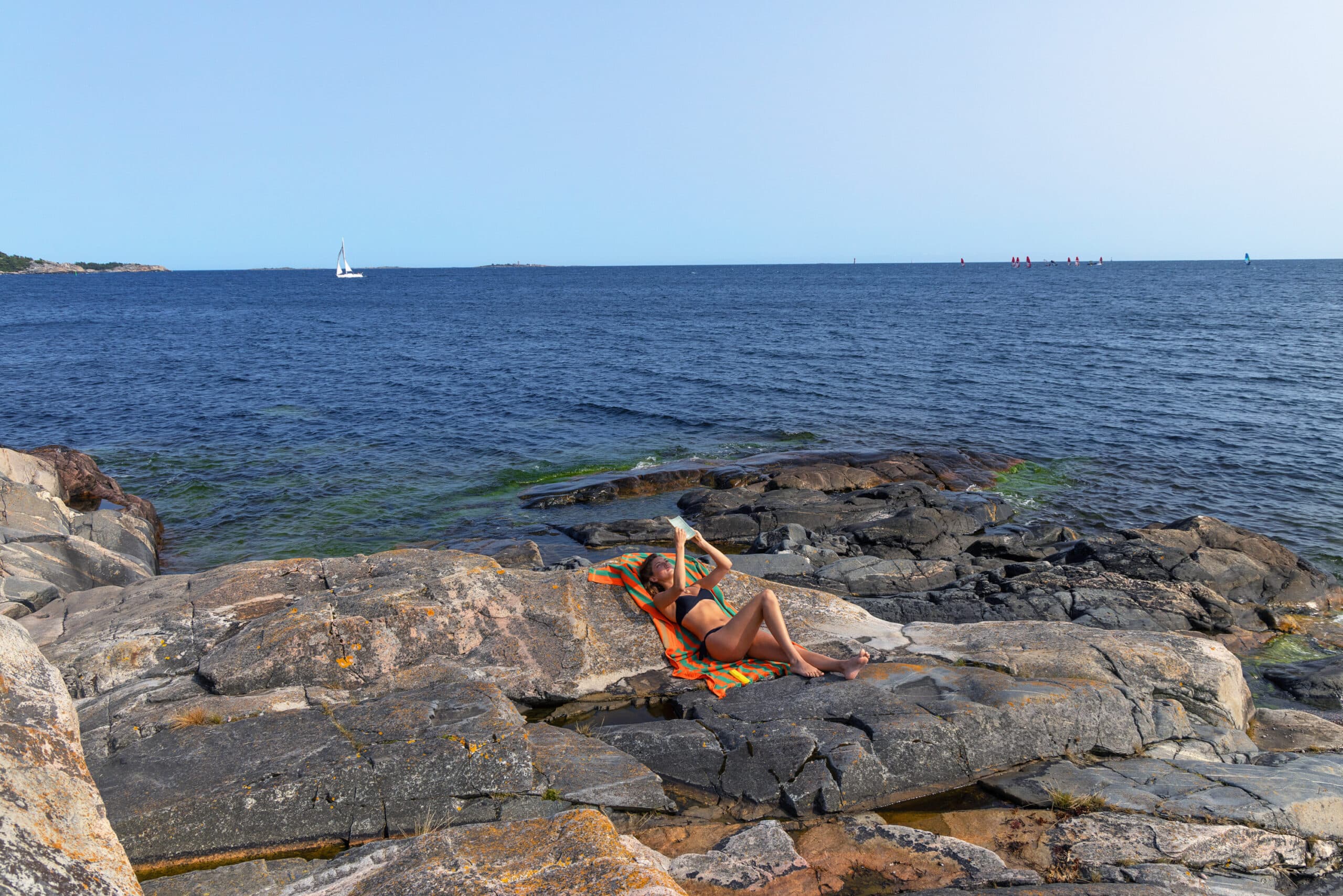 Sandhamn är en av skärgårdens mest älskade platser för bad, med natur som växlar mellan mjuka sandstränder, blanka klippor och ljusa vikar där havet ligger stilla. Här finns badplatser för alla stunder på dagen, oavsett om du söker ett lugnt morgondopp eller en hel dag i solen.